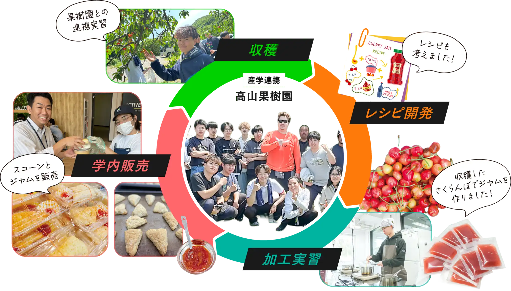 食の安全性や健康志向の高まりから、農産物を加工して提供する6次産業が注目され、SDGsへの貢献も期待されています。生産と加工と異なる分野を学んでいるように感じますが、自らの農産物を美味しく加工し、新たな価値やビジネスモデルを生み出せるようになって欲しいです。
