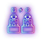 リアルな大会やオンラインイベントを想定した「配信の現場」を創る。ゲームプレイだけでなく、カメラワーク・音声・照明・進行ディレクションまでを学生自身が担当します。実況・解説の入れ方、画面構成、チーム戦の魅せ方など、“観せる技術”と“伝える演出力”を磨く実践的な授業です。プロチームの配信を手がける講師陣から、業界基準のスキルを学びます。