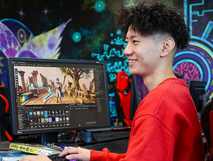 ゲームの企画立案からキャラクターや世界観づくり、基本的な制作工程まで、ゲーム制作の流れを総合的に学ぶ授業です。