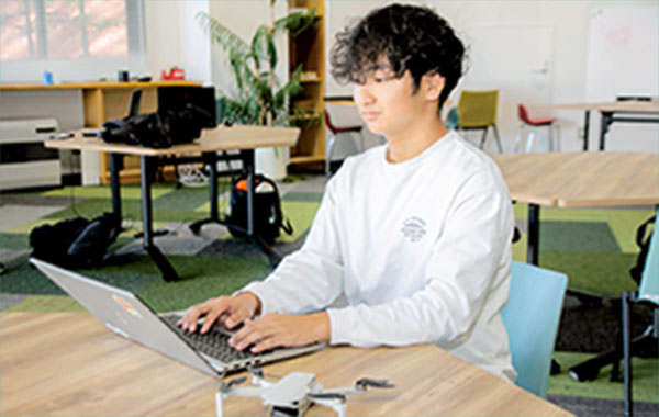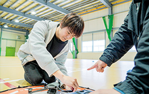 ドローンの構造や仕組み、操縦方法などの基礎知識を身につけ、安全に飛ばすための基礎技術を学ぶ授業です。