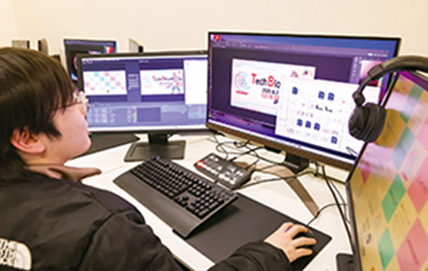 試合やゲーム実況を魅力的に届けるための撮影・音声・編集など、配信に必要な技術と演出方法を学ぶ授業です。