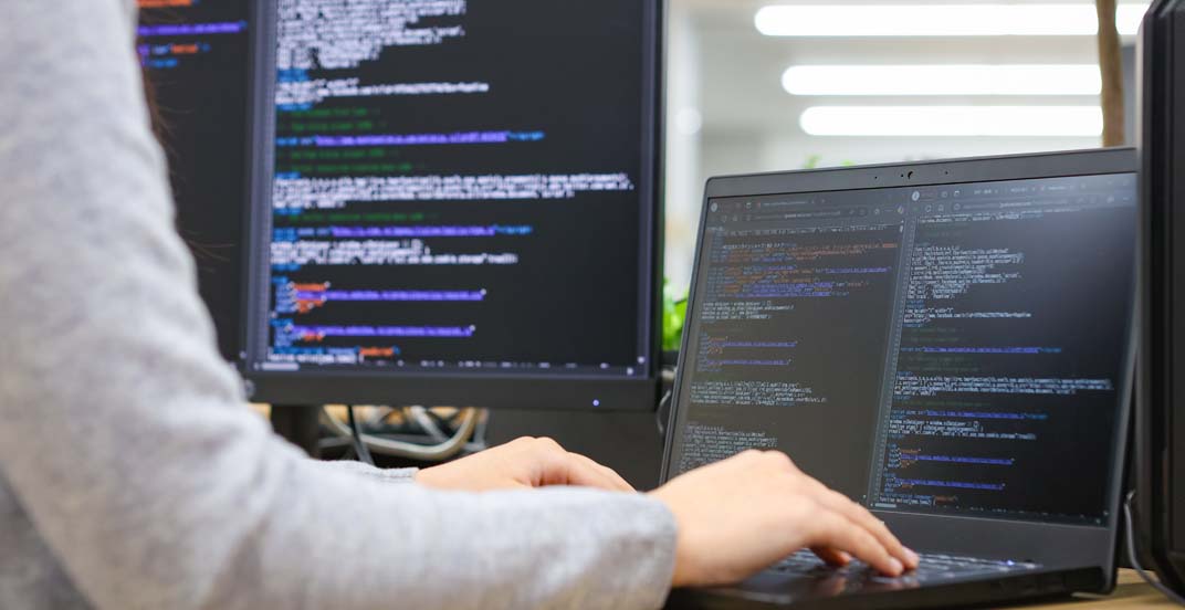 プログラマを目指すなら北海道ハイテクノロジー専門学校!Visual Basic、C言語、Javaなどの基本的なプログラミング言語を基礎から丁寧に学べます。プログラミングはすべてのIT技術の基本であり、これらの言語を習得することで、顧客のニーズに応じたシステム設計ができるエンジニアを育成します。