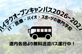 北海道ハイテクノロジー専門学校は、双方向のオンライン授業と登校しての対面授業(学科により分散実施)の併用で実施させていただきます。