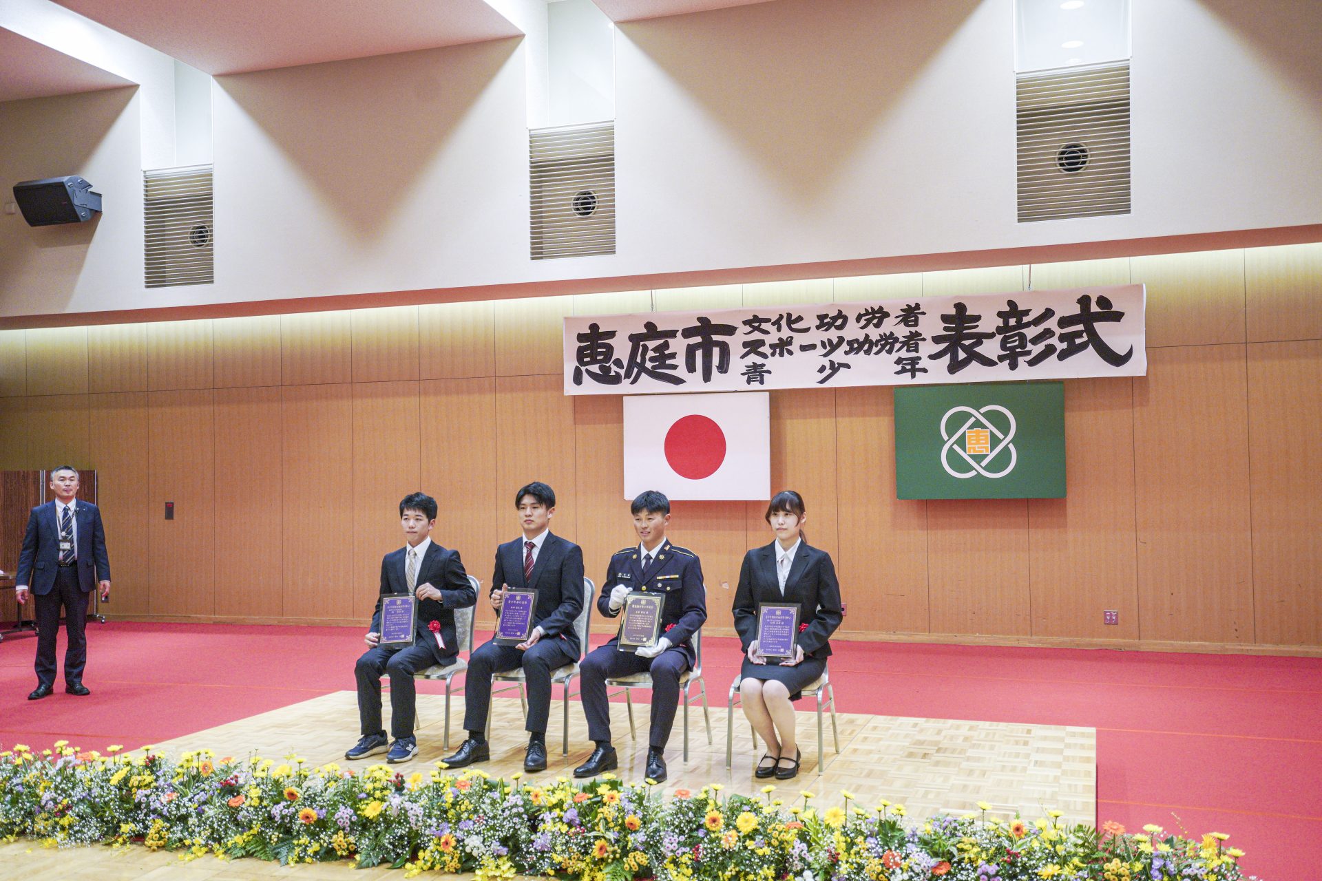 この表彰は、恵庭市において文化・教育・科学などの分野での功績や、地域社会における模範的な善行を行った個人・団体を讃える制度。恵庭市文化功労者表彰条例に基づき、毎年市の表彰の一環として実施され、地域に貢献した若者たちを称えるものです。