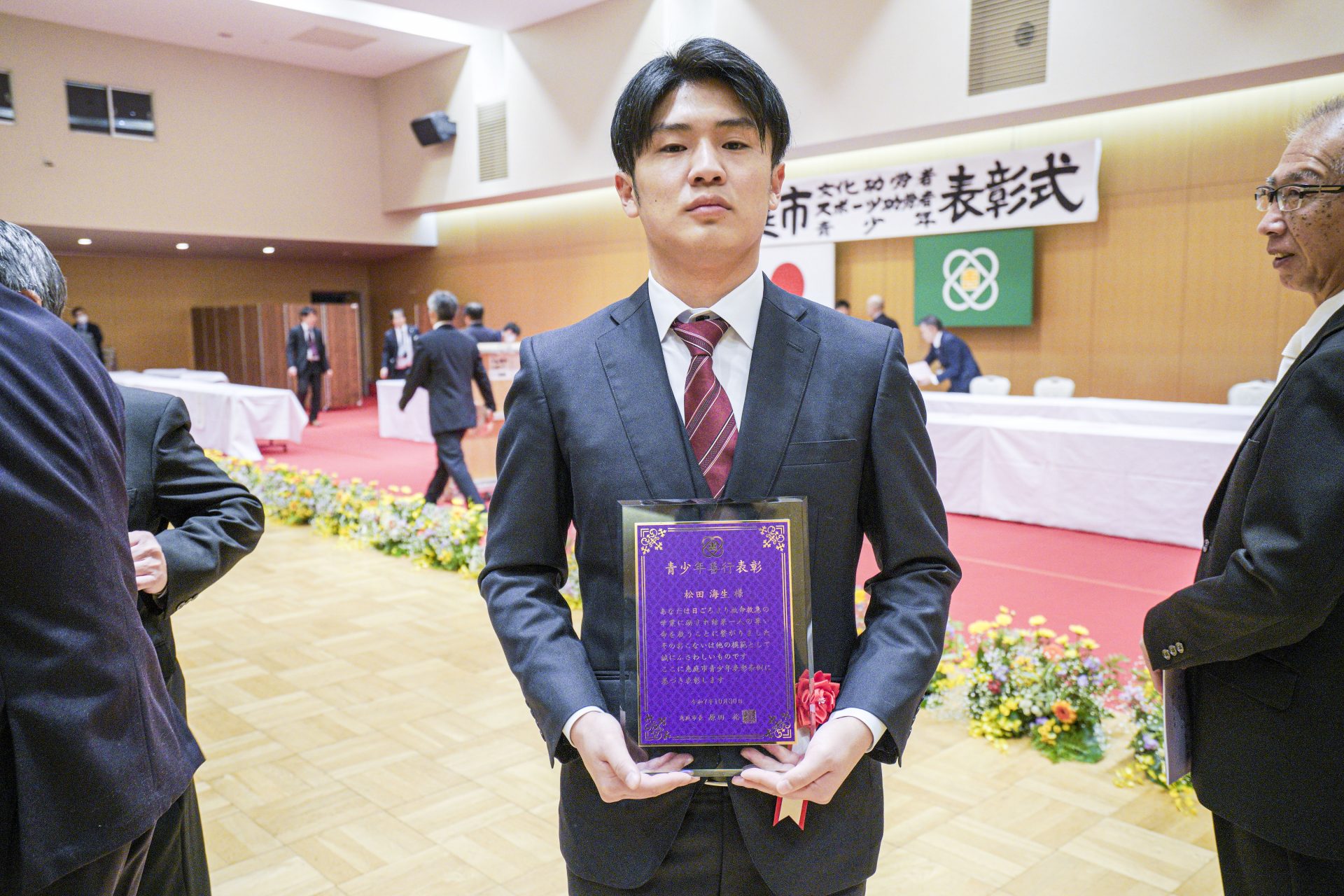 松田さんは恵庭市市長・原田裕(はらだゆたか)市長より直接表彰状を授与されました。
