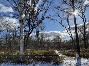 葉が落ちて木の状態が分かりやすくなる初冬に、ドローンを使った空撮を実施しました。