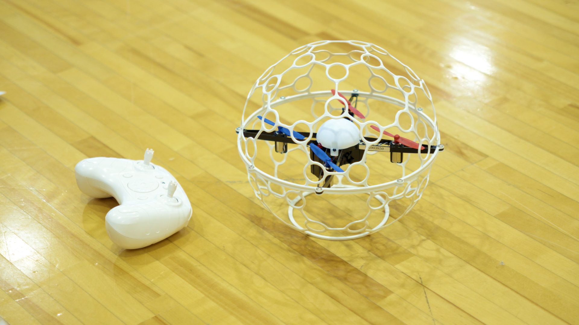 まずは本校の教員と学生スタッフが、児童の皆さんにドローンの操縦方法をレクチャー。「難しい!」といいながらまずはドローンの操縦方法を習得!すぐに覚えて楽しそうにドローンを飛ばす様子が印象的でした!