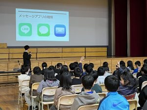 本校でサイバーセキュリティを学ぶ ITメディア学科の学生たちが、恵庭市の柏小学校を訪れ、小学生約100名に向けて「インターネットを安全に使うための授業」を行いました。
