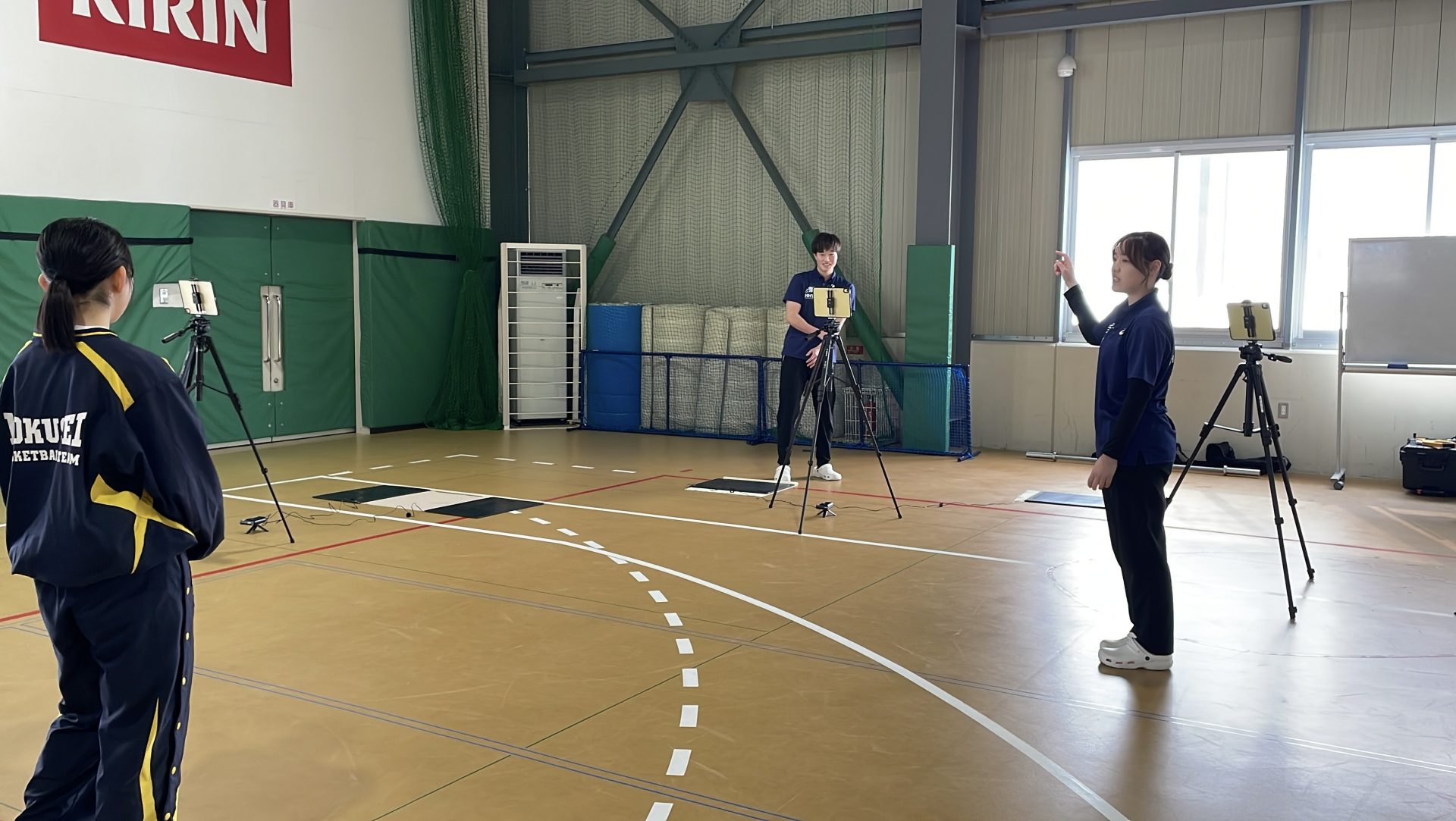 体育館内に測定エリアを設け、機器と計測動線を整備してから実施しました。