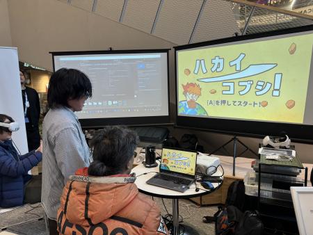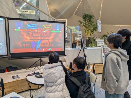 会場には多くの来場者が訪れ、学生たちのゲーム作品にも関心が集まりました。作品を前に足を止め、実際にプレイしながら楽しむ姿が見られ、学生にとっても貴重な発表の場となりました。