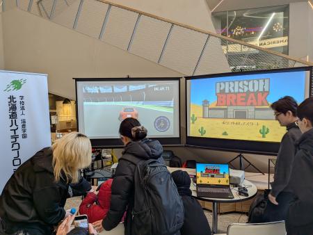 北海道ハイテクノロジー専門学校ITメディア学科の在校生が、札幌で開催されたクリエイティブイベント「ローカル・クリエイターズ・エキシビジョン9」に参加し、学生が制作したゲーム作品を展示しました。今回は1年生から3年生までの在校生が参加し、多くの来場者に自分たちの作品を実際に体験していただく機会となりました。