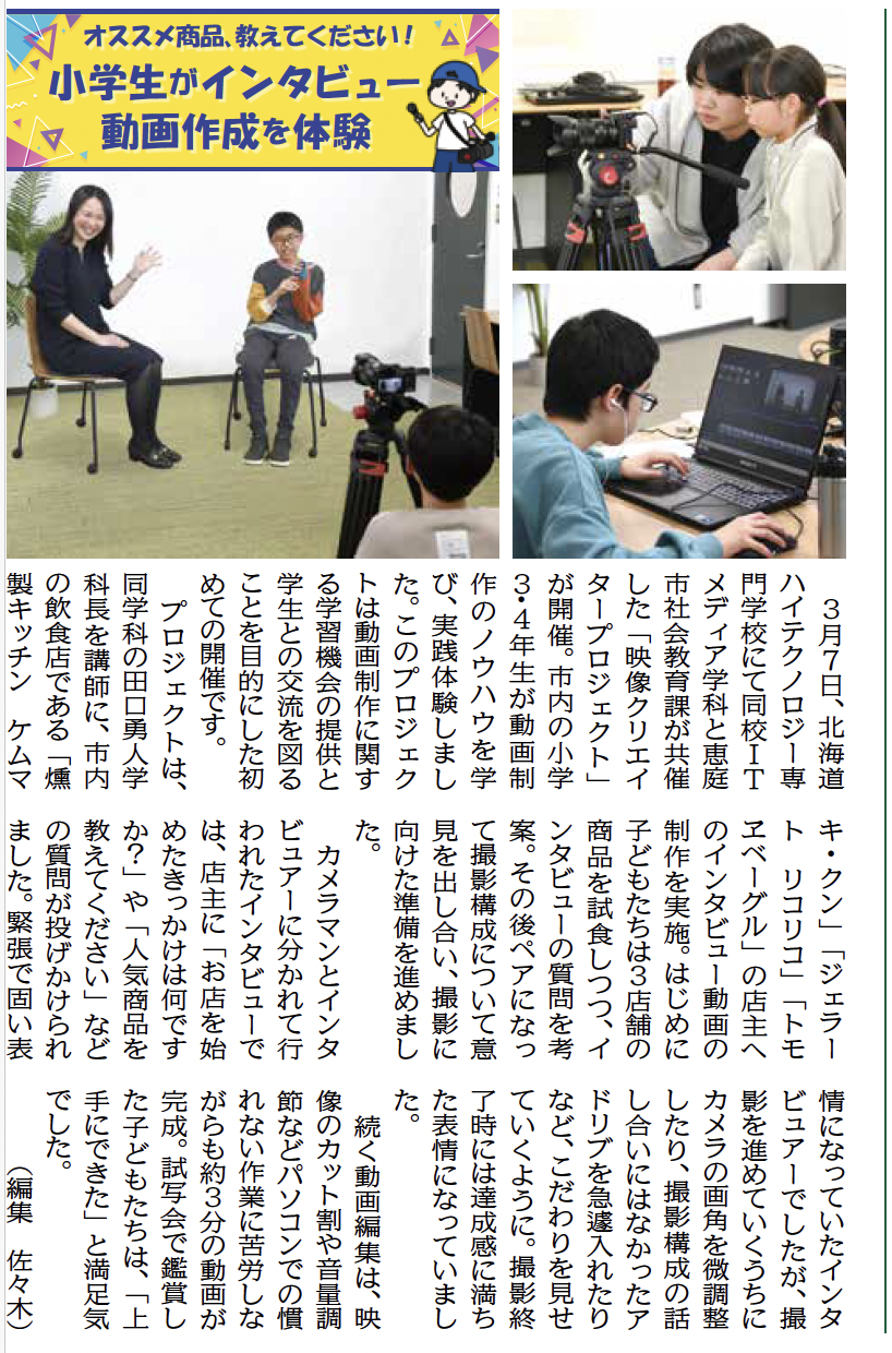 2026年3月、北海道ハイテクノロジー専門学校ITメディア学科の在校生による取り組みが地域誌に掲載されました。