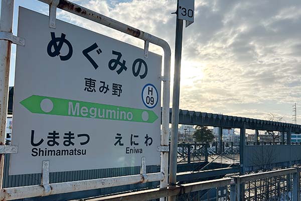 ⑦普通電車で、恵み野駅まで約8分で到着。「北広島駅」⇒「島松駅」⇒「恵み野駅」